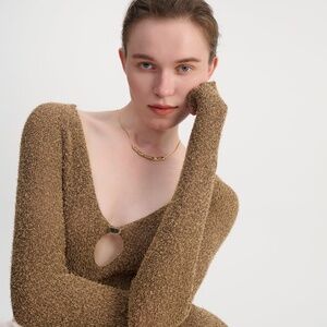 Exquisitely crafted from a soft and lightweight knit fabric, this top delivers an unmatched sensory experience, enveloping you in its gentle, irresistibly soft touch that you'll yearn to embrace all day. The deep scoop neck and the understated yet captivating cutout detail infuse a subtle allure into your ensemble while upholding an elegant and adaptable design.