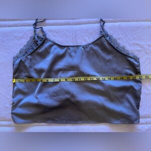 And NOW This crop to cami gray sleeveless with a pleat design on the front XL