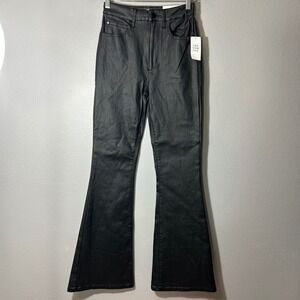 And Now This Coated Flare Leg Jeans High Rise Black Size 27 Faux Leather NWT