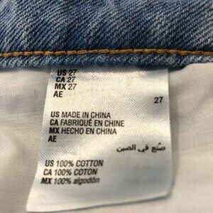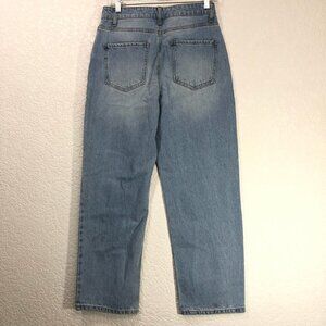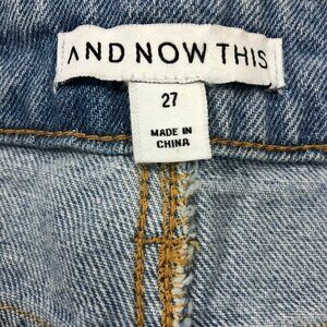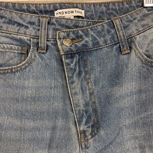 Pair of jeans by And Now This with crossover style waist/zipper. They have a baggy fit. Size is 27 and measurements are approximately waist 14.5 inches, rise 11 inches and inseam 27 inches. Good condition.