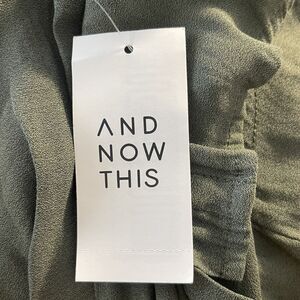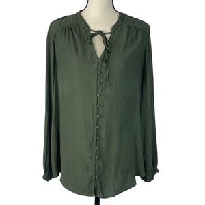 And Now This Large Top Button-Up Keyhole V-Neck Long Sleeve Hi-Low Pleated Green
