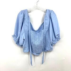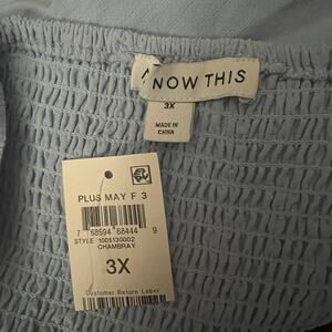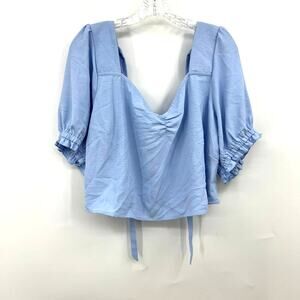And Now This Light Blue Tie Back Smocked Crop Top Blouse Plus Size 3X New