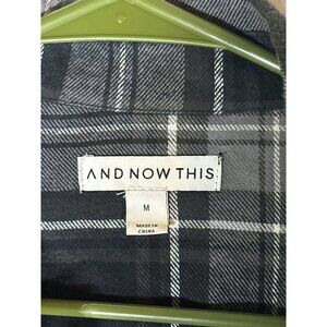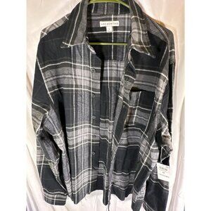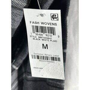 And Now This Mens Flannel Plaid Button-Down Shirt, Black/White, Size M, NWT