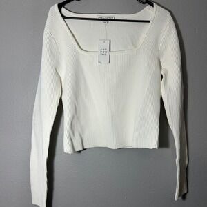 And Now This Ribbed Knit Top Square Neck Long Sleeve Cropped White Size L NWT
