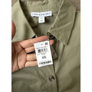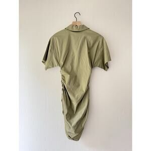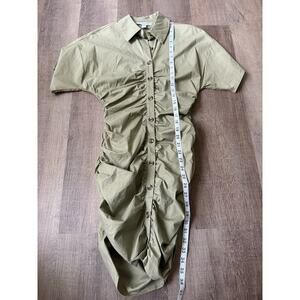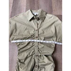 And Now This Ruched Shirt Dress Olive Military Green Button Up Short Sleeve XS