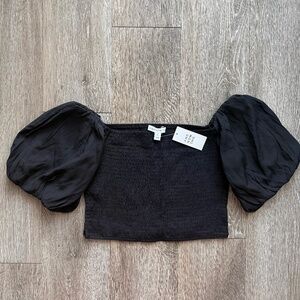 And Now This Women's Black Crop Puff-Sleeve Top XL NWT
