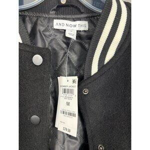 And Now This Women's Bomber Jacket M Black Polyester Quilted Varsity Style NWT's