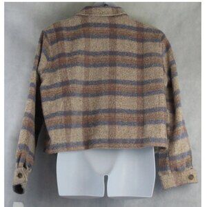 And Now This Women's Cropped Eyelash Shirt Jacket Shacket, Beige Blue Plaid, XL