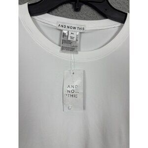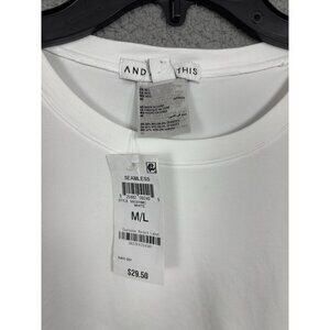 white long sleeve, seamless top, women's shirt, cotton blend, casual wear, stretchy fabric, crew neck, M/L size, And Now This, basic tee, versatile top, white blouse, everyday wear