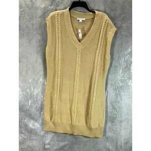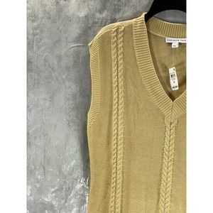 And Now This Women's Plus Camel Brown V-Neck Braided Sleeveless Pullover Sweater SZ 1X