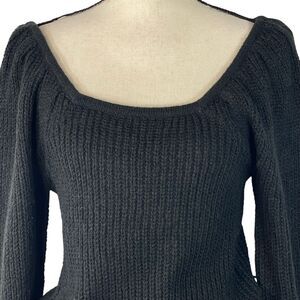 And Now This X-Large Crop Sweater Square Neck Long Puff Stretch Cavier Off-Black