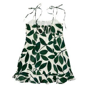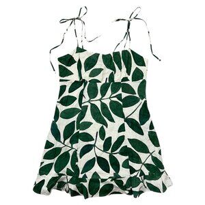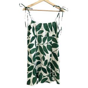 And Other Stories Leaf Print Linen Mini Babydoll Dress Green 10 Resort Coastal