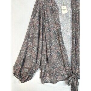 And The Why Kimono Size 2X Paisley Open Front Long Sleeve Sheer