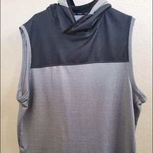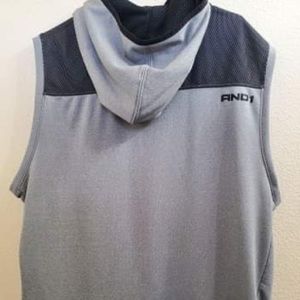 And1 workout sleeveless shirt with hoodie. Gray and black. Side buttons on shirt.