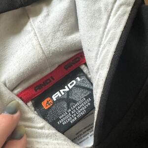 Black white and red And1 hoodie with button snaps and embroidered basketball player