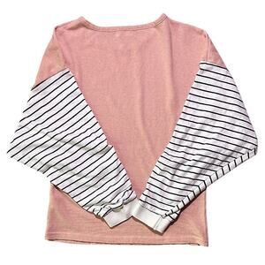 AndTheWhy Round Neck Colorblock Pink Long Sleeve T-Shirt Small