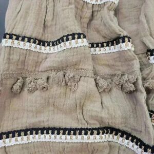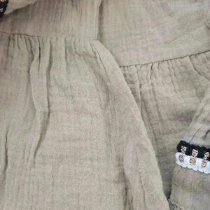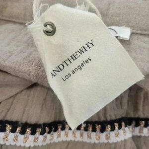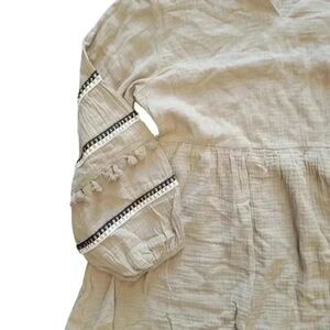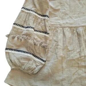 AndTheWhy Women's Light Brown Crinkled Cotton Long Sleeve V-Neck Top NEW NWT sz S