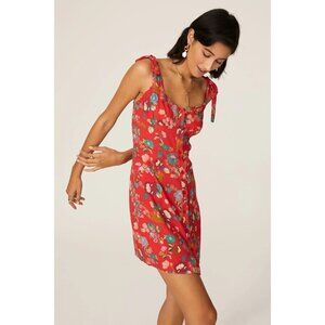 Andamane Donna Red Floral Print Tie Shoulder Mini Dress Women's Size Medium
