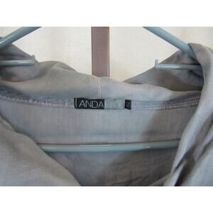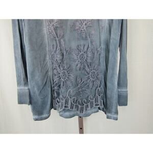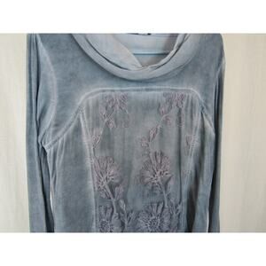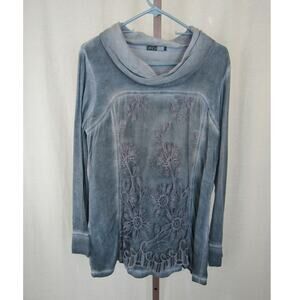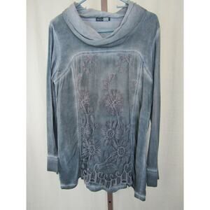 Andamio Women's Long Sleeve Cowlneck Top Blue Virgin Wool Blend Lace Floral