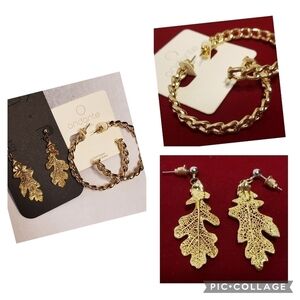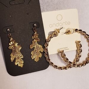 Andante Gold Dipped Large Hoop Earrings NWT & Gold Dipped Leaf Earrings REDUCED