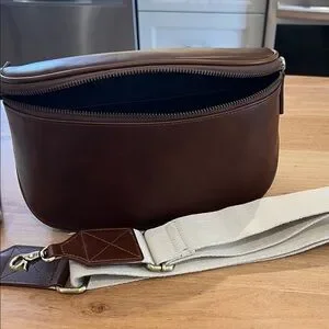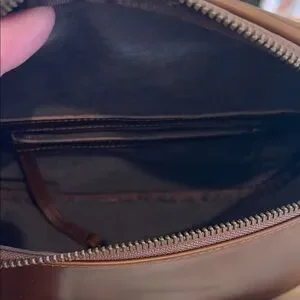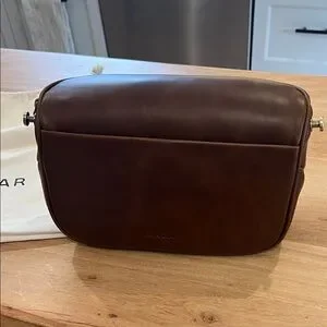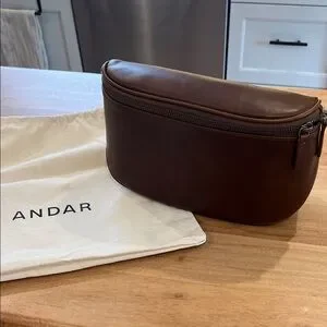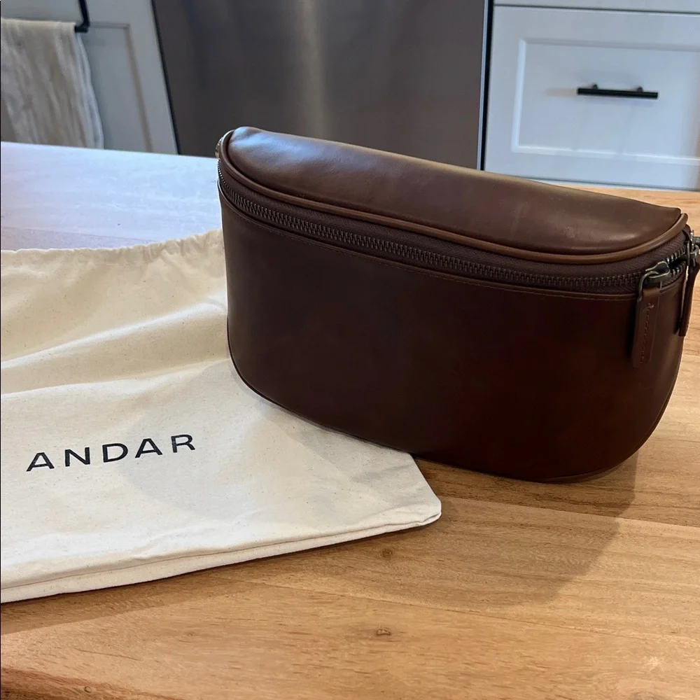 Stylish and durable, this Andar Waymaker in rich Timber brown leather is perfect for everyday use. Its sleek design offers both functionality and elegance. Comes with strap and dust bag shown. 4” W 6.5” H 10”L