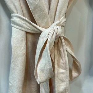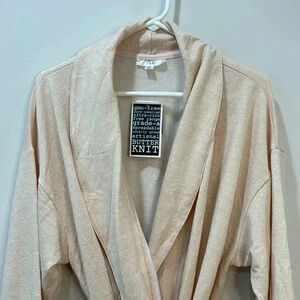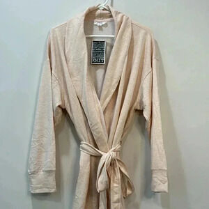 Stay cozy and stylish in this brand new Ande pink robe with a belt. Made from butter knit soft fabric, this robe is perfect for lounging around the house or getting ready in the morning. The material is 97% polyester and 3% spandex, making it comfortable and easy to care for with machine wash. The robe features a flattering belt closure and comes in a size L/XL, ensuring a comfortable fit for a range of body types. Treat yourself to luxury with this Ande robe that combines style, comfort, and quality in one beautiful piece.