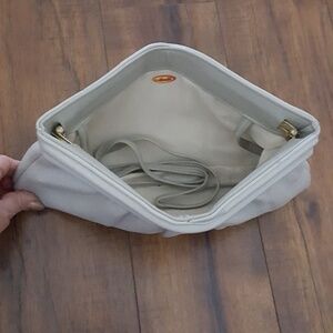 Excellent used condition. Buttery grey leather. Can be used as a clutch or crossbody. Hinge closure.