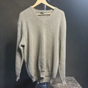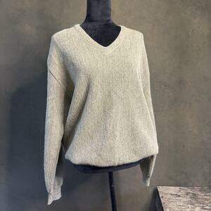 Andean 100% Alpaca Made In Peru Grey /Tan V-neck Puller over Sweater Size XL
