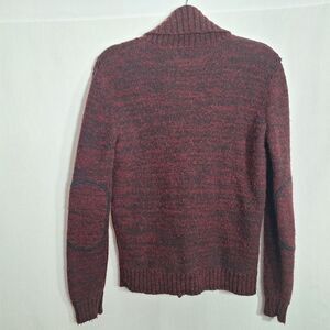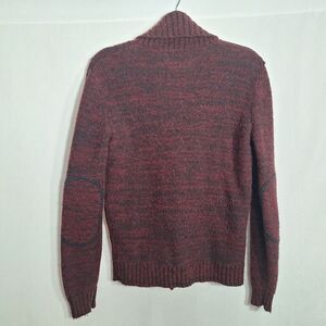 Andean Mens Alpaca Wool Blend Cable Knit Shawl Cardigan Sweater Maroon Small