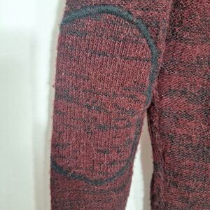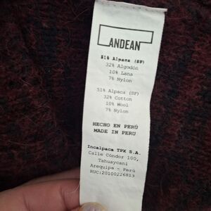 Andean Alpaca Wool Blend Maroon & Black Cable Knit Shawl Cardigan Sweater. Classic & Cozy Warmth. Ribbed Shawl Collar, Cuff, & Waist. Academia Retro Sea. Fitted. Made in Peru.