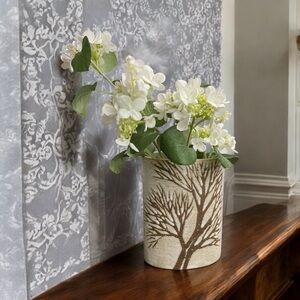 Gorgeous vintage Andersen Design Studio, Maine. Signed pottery vase. This piece features a bare tree with textured glaze.