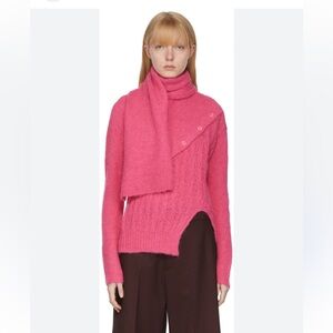 Andersson Bell likes to re-imagine classic wardrobe staples in innovative, unexpected ways. Spun with plenty of alpaca and wool, this 'Greta' sweater has an asymmetric shape with buttons across the front and a draped scarf at the neck. The saccharine pink hue will elevate fall tailoring beautifully.
