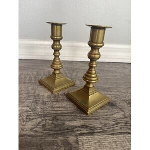 Anderson Foundry Arts & Crafts Mission Brass Candlesticks Pair 6 3/8” Art Deco
