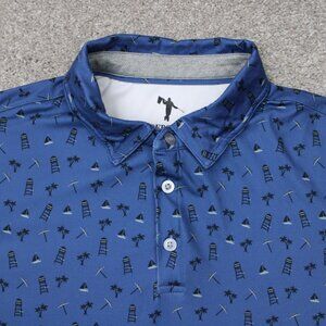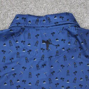 Anderson Ord AOP Polo Shirt Men Large Blue Beach All Over Print Poly Stretch S/S