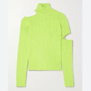 Andersson Bell Jessica Embellished Cutout Neon Cable-Knit Turtleneck Sweater