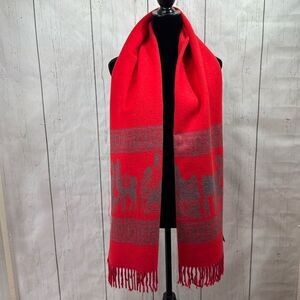 Andes Alpaca 100% Baby Alpaca Reversible Red Gray Scarf Fringe Trim Peru Artisan Soft Warm