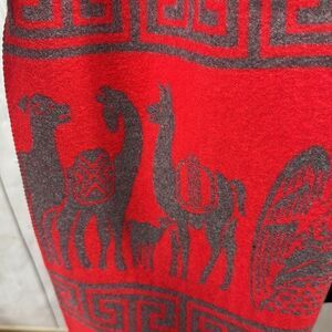 Andes Alpaca 100% Baby Alpaca Reversible Red Gray Scarf Fringe Trim Peru Artisan