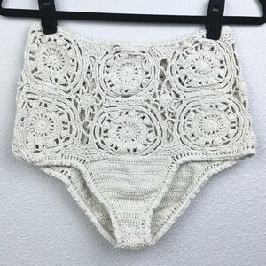 Andi Bagus Women's M/L Lotus Hi Pant Cream High-Waister Crochet Bikini Bottom Beach Vacation Resortwear Coastal Travel Cotton