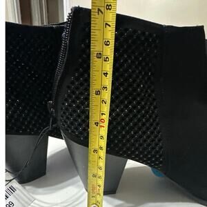 Andiamo Ankle Heel Boots 3" Stacked heel Sparkle beaded Lattice Faux Suede sz 10