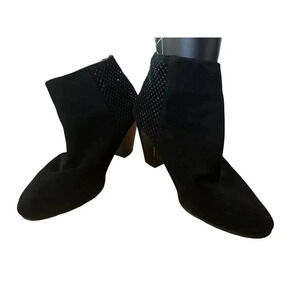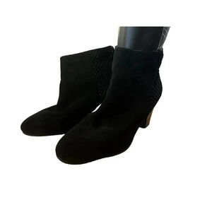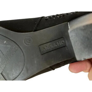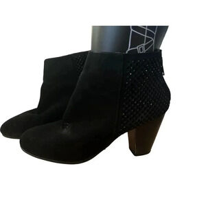 Andiamo Clover Black Perforated Rhinestone Block Heel Ankle Booties Size 6.5M