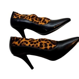 Andiamo Shoes 6.5 Leopard Print Black Closed Toe High Heel Pump Stiletto