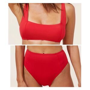 Andie Bikini Set Havana top High Waisted Cheeky Bikini Bottom Cherry Red Size L