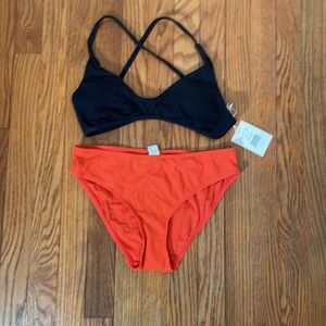 Andie Bikini Set Valencia Top Bikini Bottom Ribbed Black Orange size M NWT