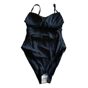 Andie Black The Riviera One Piece Adjustable Straps Belt Paddec Swimming Suit SZ M #1438