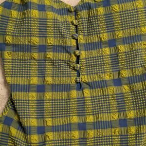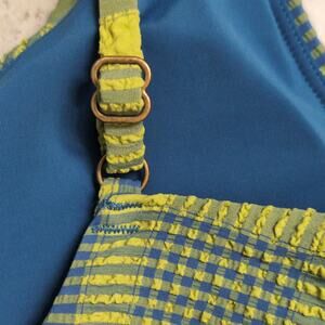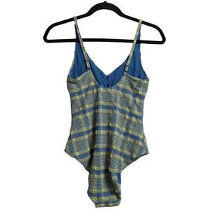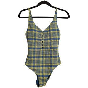 Andie Milos One Piece Plaid Green Yellow Blue Buttons Swimwear Size XS New