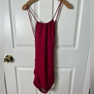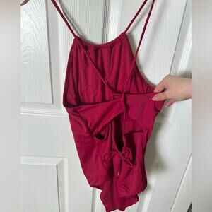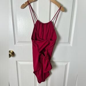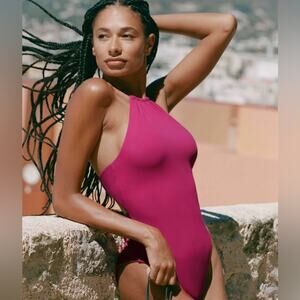 Andie NEW Pink Criss Cross Back High Neck Solid The Saidia One Piece Magenta L