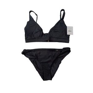 Andie Swim Bikini Set Large Tahiti Top Riviera Bottom Eco Nylon Black NWT