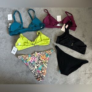 All NWT. Andie swim bundle of 4 tops and 2 bottoms. Tropez bottoms have crocheted design and the Wyndwood one-shoulder top is ribbed. All tops are padded. Both bottoms have sanitary liner. Size XL.