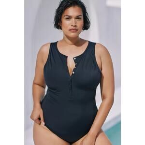 Andie Swim Eco Nylon The Malibu One Piece in Black NWT