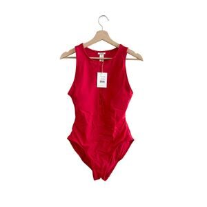 Andie Swim Eco Nylon The Malibu One Piece in Cherry Red L NWT